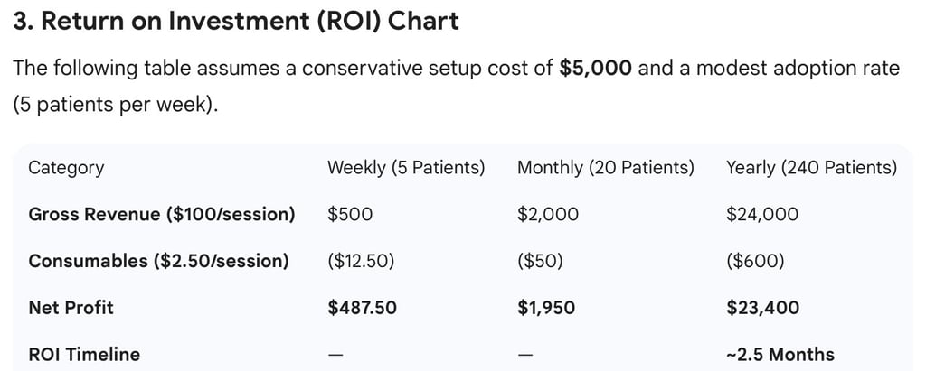 Transitioning from clinical promise to clinical practice requires a clear look at the "bottom line." For an oral surgery or implant focused practice, molecular hydrogen is not just a healing modality, it is a low overhead, high differentiation service. Because MH is generated on site from distilled water, your ongoing "cost per procedure" is nearly zero after the initial equipment purchase.