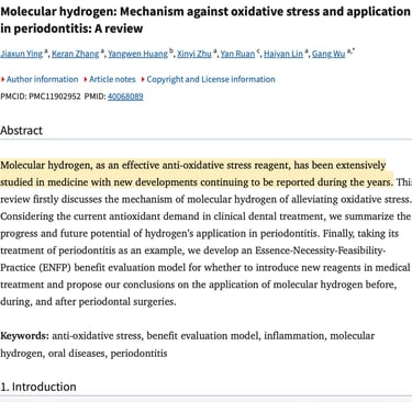 Clinical Review Link Molecular hydrogen: Mechanism against oxidative stress and application in periodontitis (2025)