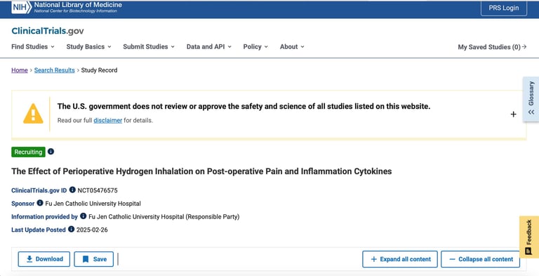 Clinical Trial Link: The Effect of Perioperative Hydrogen Inhalation on Post-operative Pain and Inflammation Cytokines