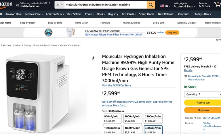 To implement the full protocol (irrigation + inhalation), a practice typically needs two pieces of equipment. Clinical MH Inhalation Unit and a medical grade PEM (Proton Exchange Membrane) generator capable of 600–1200 mL/min will Cost $2,500 – $6,000 MH Water Generator (High PPM) To create the irrigation and rinse solution. Cost $500 – $2,500 Batch-style units are most efficient for surgery. Consumables are Nasal cannulas $1.50/ea and distilled water $1.00/gallon.