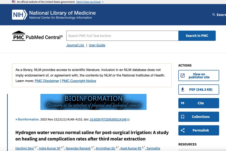 Clinical Study Link: Hydrogen water versus normal saline for post-surgical irrigation: A study on healing and complication rates after third molar extraction (2024