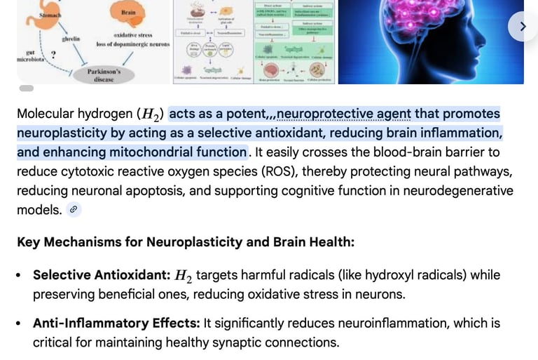 I detailed description of molecular hydrogen's path to the brain. How molecular hydrogen changes neural plasticity of childhood trauma, events and conditioning.